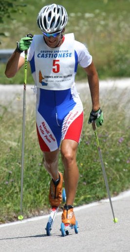 Alle spalle del portacolori del Centro Sportivo Esercito di Courmayeur il compaesano Eugenio Bianchi del Brianza Skiroll; 3ยฐ Claudio Consagra (CSE).