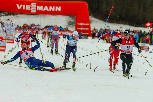 La quinta tappa del Tour de Ski regala l’inaspettata crisi di Martin Sundby ma soprattutto registra il secondo podio dell’Italia dopo la vittoria di Federico Pellegrino nella sprint d’apertura a Lenzerhide. Stavolta è un fantastico Francesco De Fabiani a conquistare un bellissimo terzo posto, con una spaccata degna di un ballerino di musica classica che proprio sul traguardo è servita a controllare il prepotente ritorno del norvegese Niklas Durhaug, mentre un metro davanti il kazako Alexey Poltaranin conquistava il successo a spese di un ritrovato Dario Cologna per pochi centimetri.