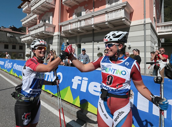 Non poteva esserci epilogo migliore per la Coppa del Mondo di Ski Roll 2014 che oggi si è conclusa sulle strade trentine della Val di Fiemme. Giulia Stürz e Gaia Vuerich, fiemmesi doc, hanno vinto la Team Sprint andata in scena su di un circuito di 2,4 km che ha “abbracciato” il paese di Ziano. Nell’ultimo dei sei giri in programma il duo azzurro ha portato a termine una bella rimonta sopravanzando la coppia russa formata dalla Grushina e dalla fresca vincitrice di Coppa del Mondo Konohova, mentre il podio è stato completato dalla Svezia con Sömskar-Mohlin. In campo maschile successo per la Svezia di Marcus Johansson, anch’egli vittorioso nel ranking individuale di Coppa del Mondo, e Victor Gustafsson che hanno battuto Russia 1 e gli azzurri Simone Paredi e Dietmar Nockler, terzi. In campo Junior, invece, sono stati i russi Mitin-Nischakov a trionfare davanti alla Svezia e ai nostri Jacopo Giardina e Marco Longon, mentre in campo femminile vittoria in rimonta per le tedesche Rockstroh-Claudi brave ad infilare nell’ultima tornata le gemelle Anna e Lisa Bolzan e Russia 1.